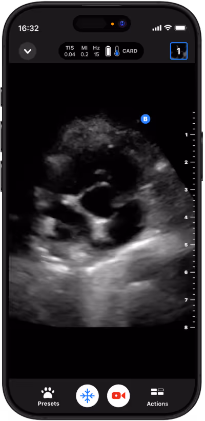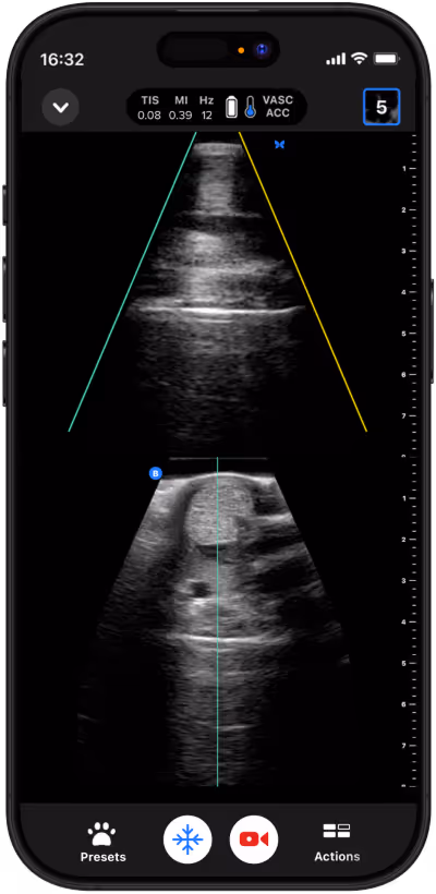 Meet our easiest-to-use POCUS solution with the sharpest image quality, advanced imaging tools, and flexible depth range from shallow to deep–customized for veterinary use across care settings.